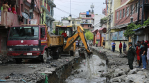 सामाखुसी खोलामाथिको स्ल्याब हटाई डोजर लगाएर खोला सफा गर्दै महानगर