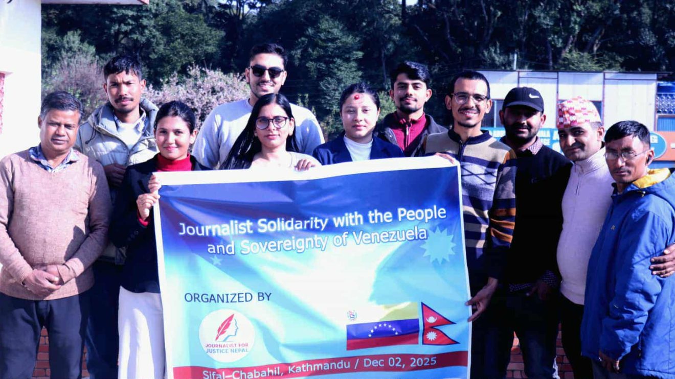 काठमाडौं । न्यायका लागि पत्रकार (जर्नलिस्ट फर जस्टिस) नेपालले भेनेजुएलाका जनताको पक्षमा “जर्नलिस्ट सोलिडारिटी विथ द पीपल एन्ड सोअभरेन्टी अफ भेनेजुएला“ कार्यक्रम सम्पन्न गरेको छ । अमेरिकाले भेनेजुएलासँगको द्वन्द्वलाई आक्रामक ढंगले बढाएको र समाधानका लागि संवादको मार्ग अपनाउन जर्नलिस्ट फर जस्टिस नेपालले आह्वान समेत गरेको छ । न्याय, सार्वभौमिकता, र भेनेजुएलाका जनताको...