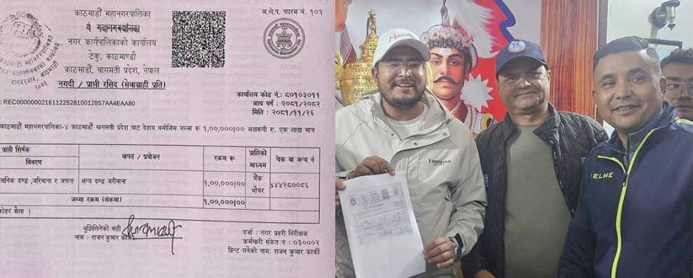महानगरले जरिवानाका पत्र काटको २४ घण्टा पनि नवित्दै राप्रपाका नेता एव संघीय सांसद ज्ञानेन्द्र राप्रपाले बुझायो महानगरलाई एक लाख जरिवाना बागमती प्रदेशका सासद सुनिल केसी सहितको टोलीले महागनरलाई १ लाख जरिवाना बुझाएको हो ।