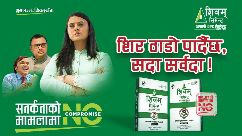 काठमाडौं । शिवम् सिमेन्टले आफ्नो ब्रान्ड क्याम्पेन ‘क्वालिटीको मामिलामा नो कम्प्रमाइज’ अन्तर्गत दोस्रो भिडियो सार्वजनिक गरेको छ।