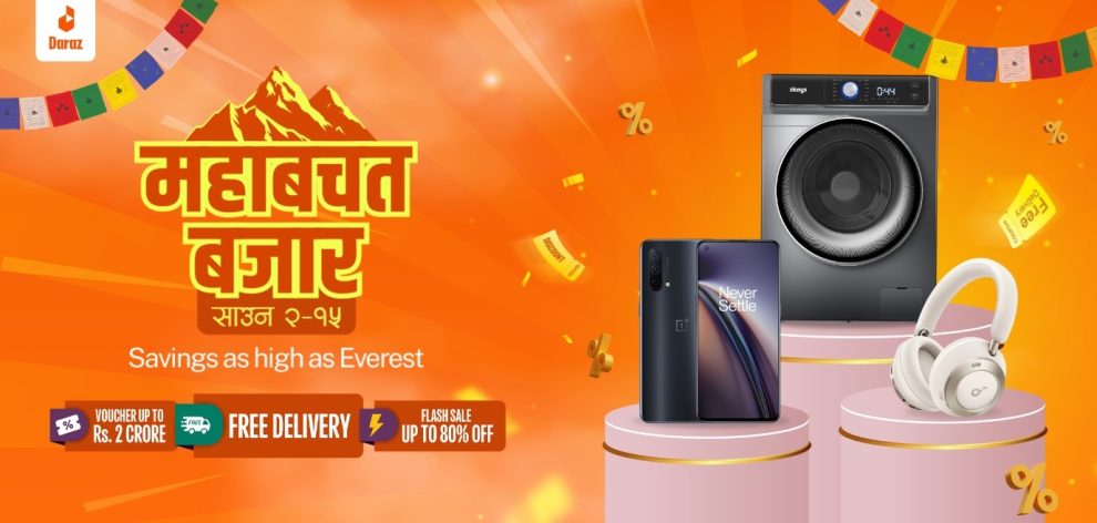श्रावण २ देखि श्रावण १५ गतेसम्म सञ्चालन हुने यो भव्य सेल अन्तर्गत ग्राहकहरूले आफ्नो खरिदमा सगरमाथाको चुचुरो झैँ उच्च ८० प्रतिशत सम्मको छुट, निःशुल्क डेलिभरी, र २ करोड रुपैयाँ बराबरको भौचर लगायतको लाभ लिन सकिनेछ ।