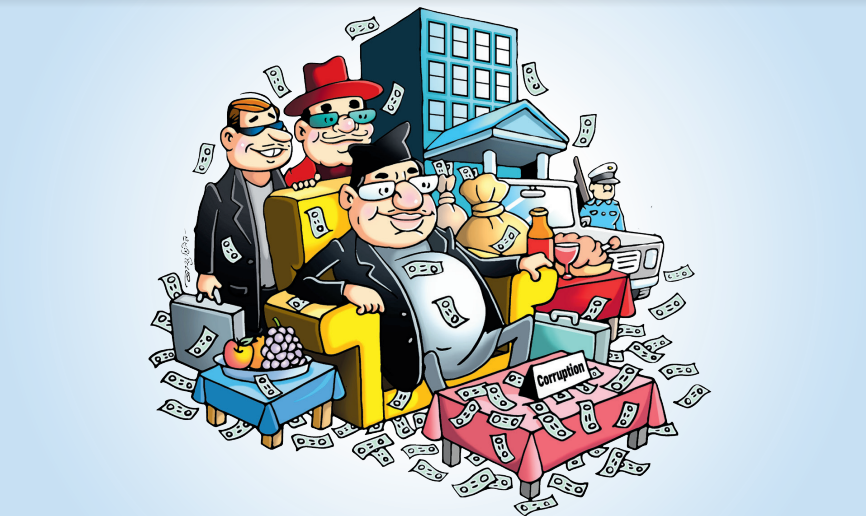 कम्पनी रजिष्ट्रारको कार्यालयदेखि मालपोत कार्यालय । सडक विभागदेखि यातायात कार्यालय मात्र होइन । पालिकाका वडा वडा तहसम्म भ्रष्टाचार मौलाएको छ । देशमा सम्पत्ति शुद्धिकरण कार्यालय पनि छ । तर कति जनाको सम्पत्ति शुद्धिकरण गरियो त ? कति जना शुद्ध भेटिए त ?