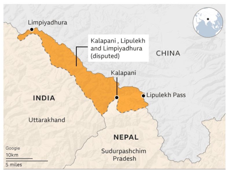 काठमाडौँ । दुई छिमेकी देश चीन र भारतले भदौ ३ गते नेपालको भूभाग कालापानी, लिम्पियाधुरा र लिपुलेकबाट सीमापार व्यापारसहितको सम्झौता गरेका छन् । परराष्ट्र मन्त्रालयले भदौ ४ गते ‘नेपाली भूमि लिपुलेक हुँदै चीन–भारतबिच सीमा व्यापारका विषयमा सोधिएका प्रश्नका सम्बन्धमा जवाफ लेख्दै दुई देशको सम्झौता स्वीकार्न नसकिने प्रस्ट पारिसकेको छ ।