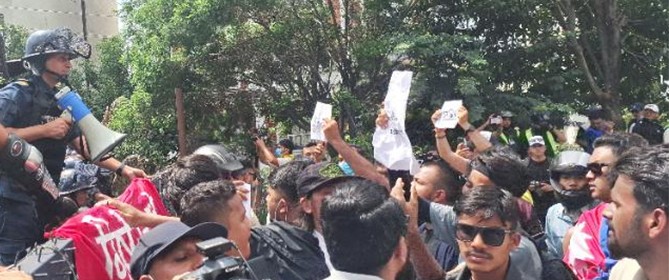 माईतीघर मण्डलामा जेनजी र प्रहरी आमने-सामने
