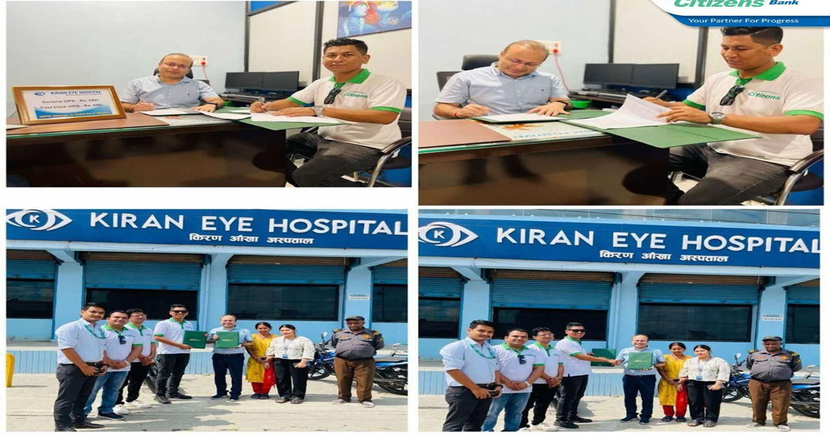 सिटिजन्स बैंक र किरण आई हस्पिटलबीच समझदारीपत्रमा हस्ताक्षर