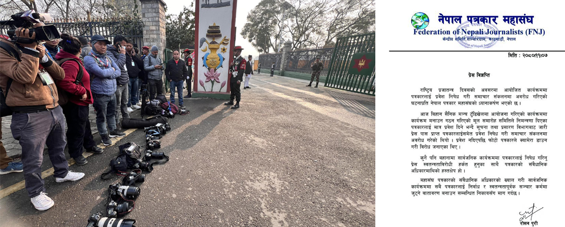 प्रजातन्त्र दिवसको अवसरमा पत्रकारले प्रवेश पाएनन्, क्यामरा डाउन