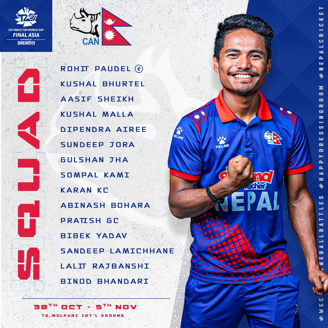 टी-२० विश्वकपका लागि नेपाली टीम घोषणा, सन्दीपको पनि कमब्याक