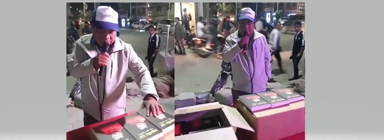 व्यापारीले ३० प्रतिशत कमिशन मागेपछि महावीर आफैँ किताब बेच्न सडकमा